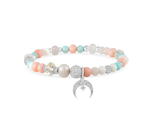 Coral Pumped eye- White diamonds&Gold Tennis bracelet