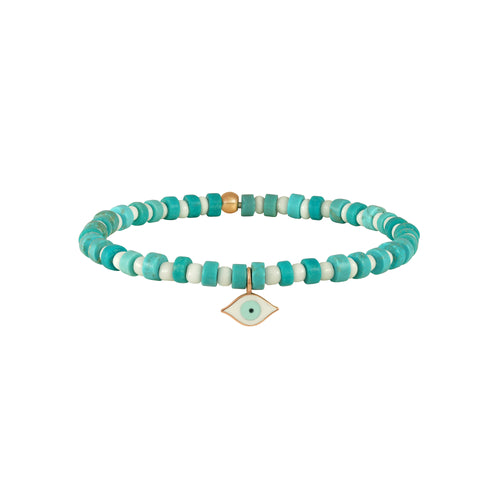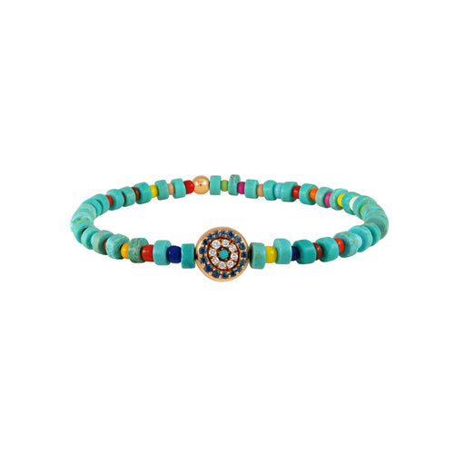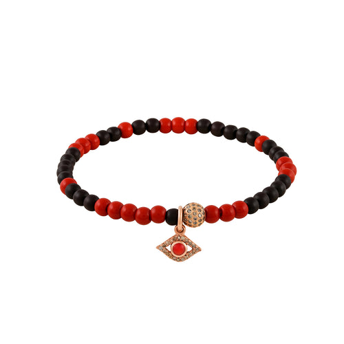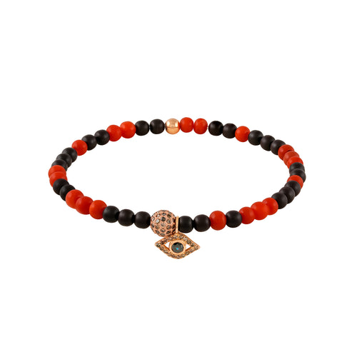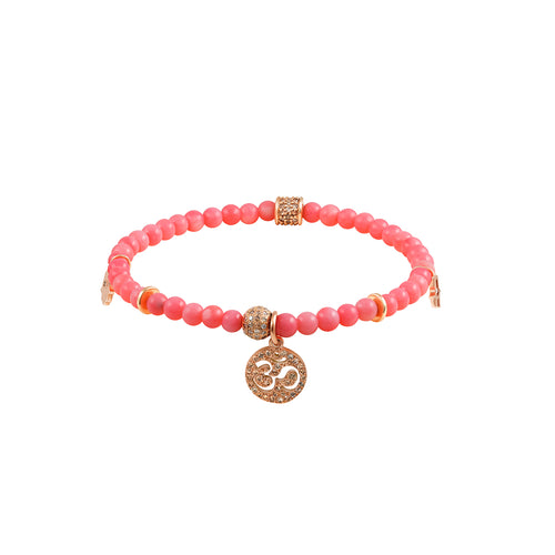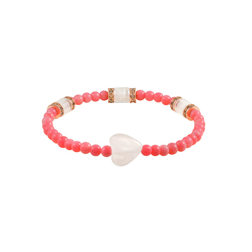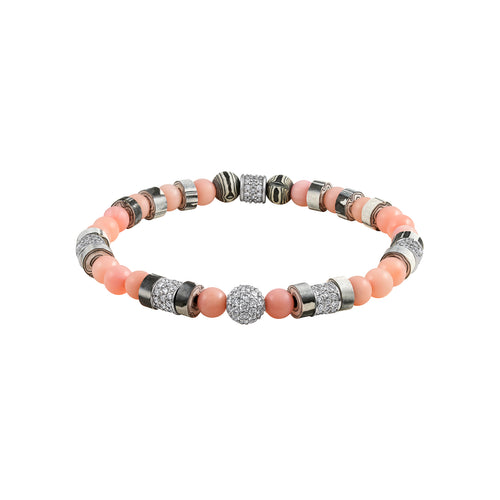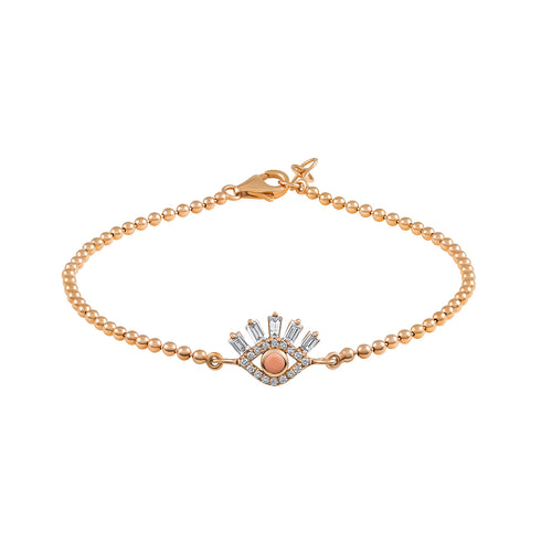 Coral Pumped eye- White diamonds&Gold Tennis bracelet