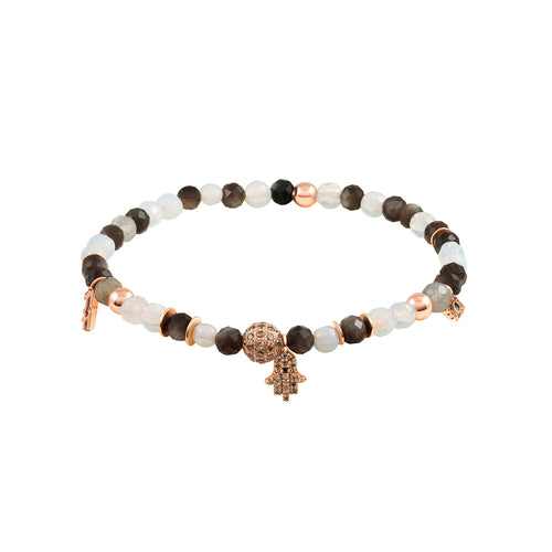 Clear Quartz & Labradorite _ Rose Gold Brown Diamond